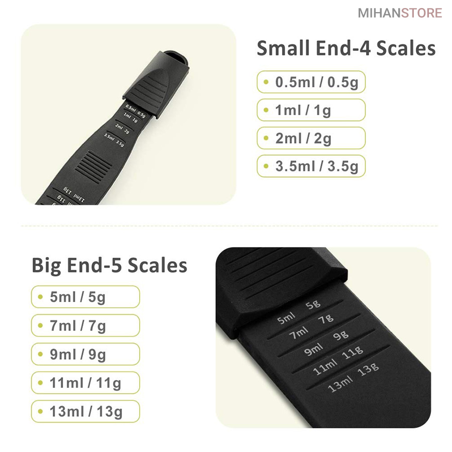 در این قسمت شما را با قاشق اندازه گیری پیمانه دو طرفه Spoon آشنا میکنیم این وسیله در آشپزی کاربرد زیادی دارد و برای اندازه‌گیری مواد اولیه از آن استفاده می‌شود. این پیمانه براساس یک واحد رسمی در پخت و پز شناخته شده و وسیله بسیار دقیقی در دستورالعمل غذاهاست. تمام سایز های مورد نیاز در یکجا فقط کافیه مخزن روی قاشق را با انگشت به صورت کشویی بالا و پایین ببرید تا به معیار مورد نظر برسید. از جنس پلاستیک درجه یک ساخته شده است ، شستشوی این پیمانه ها بسیار راحت می باشد و فضای خیلی کمی را اشغال می کند چون  پیمانه اندازه یک قاشق است پس از این نظر خیالتان راحت است که فضای زیادی را اشغال نمی کند. از این محصول برای اندازه گیری مایعات و دارو ها نیاز می توانید استفاده کنید.