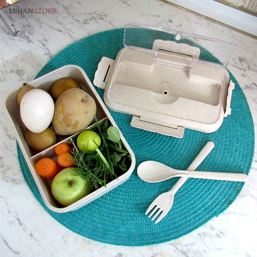 این ظرف غذا و لانچ باکس از الیاف بامبو و پلاستیک از نوع پلاستیک غیر سمی و آنتی باکتریال هستند. فاقد مواد سمی هستند قابل استفاده در مایکروفر و ماشین ظرفشویی و فریزر میباشند این ظرف ها آنتی باکتریال هستند و از خراب شدن غذای شما جلوگیری میکنند کاملا بدون نشتی و دارای طراحی زیبا و سبک هستند. درب ظرف واشر دارد که از نشت مواد غذایی جلوگیری میکند میتوانید به راحتی مایعات و سوپ را داخل ظرف نگه داری کنید مناسب محل کار مدرسه باشگاه و پیک نیک و ....