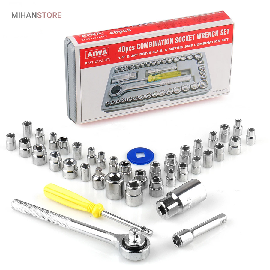 آچار بکس، مجموعه آچار بکس، ابزار تعمیرات، آچار AIWA، ابزار فنی، آچار بکس 40 عددی، ابزار حرفه‌ای، آچار خودرو