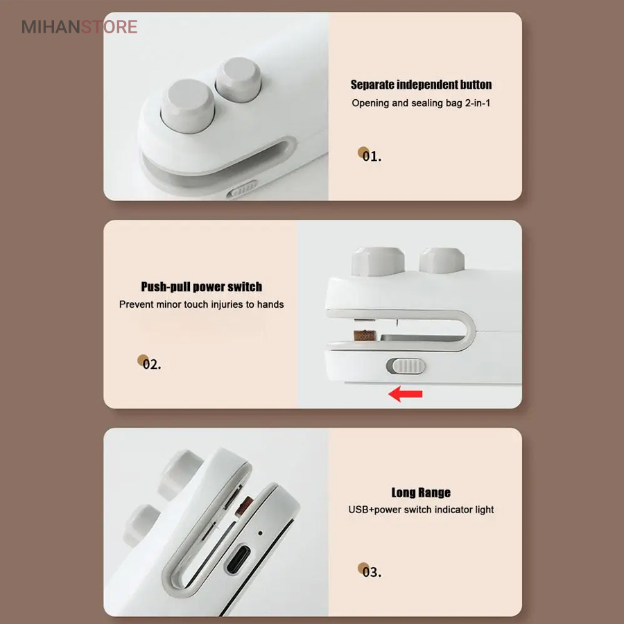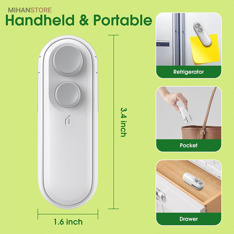 این محصول یک مینی سیلر کیسه‌ای قابل حمل و شارژی است که برای حفظ تازگی مواد غذایی و کاهش هدررفت مناسب است. این دستگاه با باتری قابل شارژ و کاربردهای متنوع برای استفاده روزانه، کمپینگ و آشپزخانه طراحی شده و نگهداری آن آسان است. این سیلر با انواع کیسه‌ها از جمله PP، PE و PVC سازگار است.