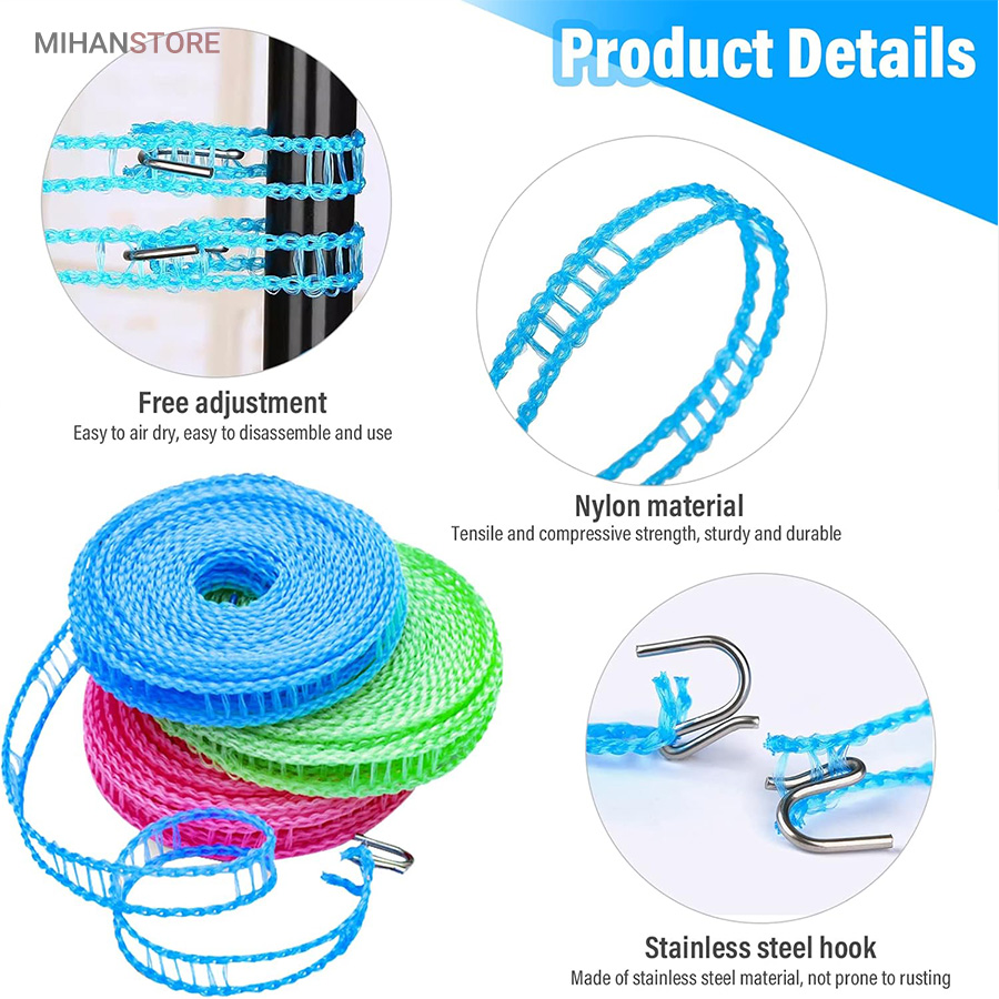 بند رخت بسیار بادوام در فضای باز، محکم و بادوام، طراحی نرده مانند منحصر به فرد باعث می شود لباس های شما سر نخورده و در یک جا جمع نشود، می توانید به راحتی انواع لباس ملحفه و اجسام سنگین را آویزان کنید.این محصول دارای دو قلاب استیل ضد زنگ به راحتی قابل نصب است و می توانید طول آن را بر اساس نیاز خود تنظیم کنید.گیره از فولاد ضد زنگ ساخته شده است که نسبت به رخت آویز سنتی بادوام تر، عمر طولانی تر، انعطاف پذیری بالا و ویژگی منحصر به فرد این محصول بعد از استفاده میتوانید جمع کنید که بعد از جمع شدن فضای حدودی 4 سانتی متر را اشغال میکند.