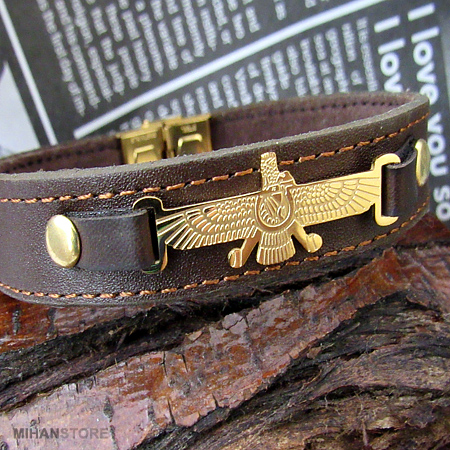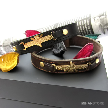 دستبند چرمی طرح فروهر با دو رنگ قهوه‌ای و مشکی و پلاک نازک طلایی فروهر نمونه‌ای از زیورهای ساده و در عین حال پرطرفدار از جانب آقایان و خانوم ها است که با اکثر رنگ‌های لباس همخوانی داشته و در عین حال متفاوت دیده می‌شود. این دستبندها مناسب ترین هدیه برای جوانان شیک پوش است.