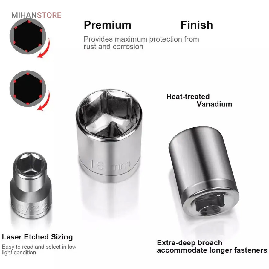 ویژگی های مجموعه 40 عددی آچار بکس AIWA: