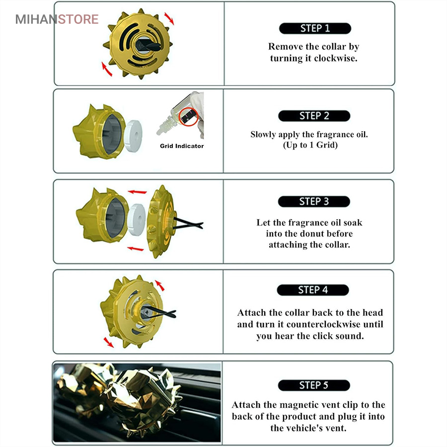 ساخته شده با مواد سازگار با محیط زیست، با کیفیت بالا. آبکاری سطح خوبی دارد، ظاهری لوکس دارد، جزو خوشبوکننده های ترند دنیا می باشد. در جعبه بسته بندی یک بطری اسانس وجود دارد، وقتی بو محو شد، می توانید اسانس بیشتری را در دونات معطر بریزید، اگر یک بطری اسانس تمام شد می توانید از اسانس های مایع ادکلنی برای شارژ خوشبو کنند تان استفاده کنید ، طراحی انحصاری، قابل استفاده در ماشین و داخل خانه و هر نوع کار در خانه غیر سمی و بدون مواد شیمیایی و بدون رایحه های مصنوعی معمولی خوشبو کننده ماشین هوای داخل خودرو را خوشبو کنید، هوا را تازه نگه دارید، گازهای مضر هوا را کاهش دهید.