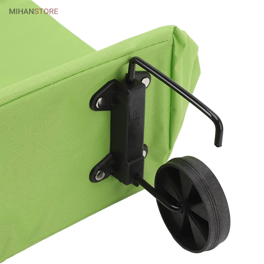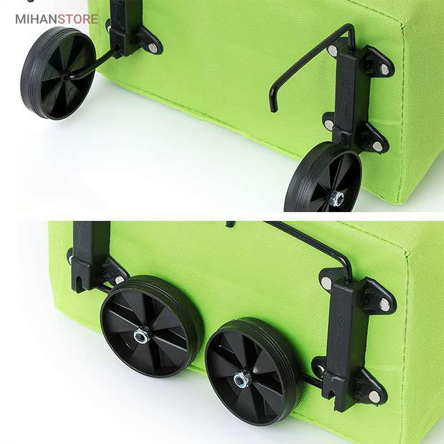 کیف خرید چرخدار تاشو دارای چرخ‌هایی است که به شما کمک می‌کند بدون اینکه وزن خریدتان را بر روی شانه‌ها یا دست‌های خود احساس کنید، خریدتان را به‌راحتی حمل کنید. برای استفاده از ساک خرید در حالت چرخدار، کمی تایرها را به سمت عقب کشیده تا از محل خود خارج شوند و در حالت چرخدار از ساک خرید استفاده کنید.