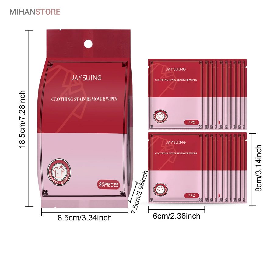پد پاک کننده لکه لباس Eunmsi (بسته 20 عددی) پد پاک کننده لکه لباس فوری | پد پاک‌کننده Eunmsi برای سفر، خانه و لباس کودک