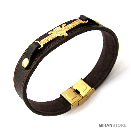 دستبند چرمی طرح فروهر با دو رنگ قهوه‌ای و مشکی و پلاک نازک طلایی فروهر نمونه‌ای از زیورهای ساده و در عین حال پرطرفدار از جانب آقایان و خانوم ها است که با اکثر رنگ‌های لباس همخوانی داشته و در عین حال متفاوت دیده می‌شود. این دستبندها مناسب ترین هدیه برای جوانان شیک پوش است.